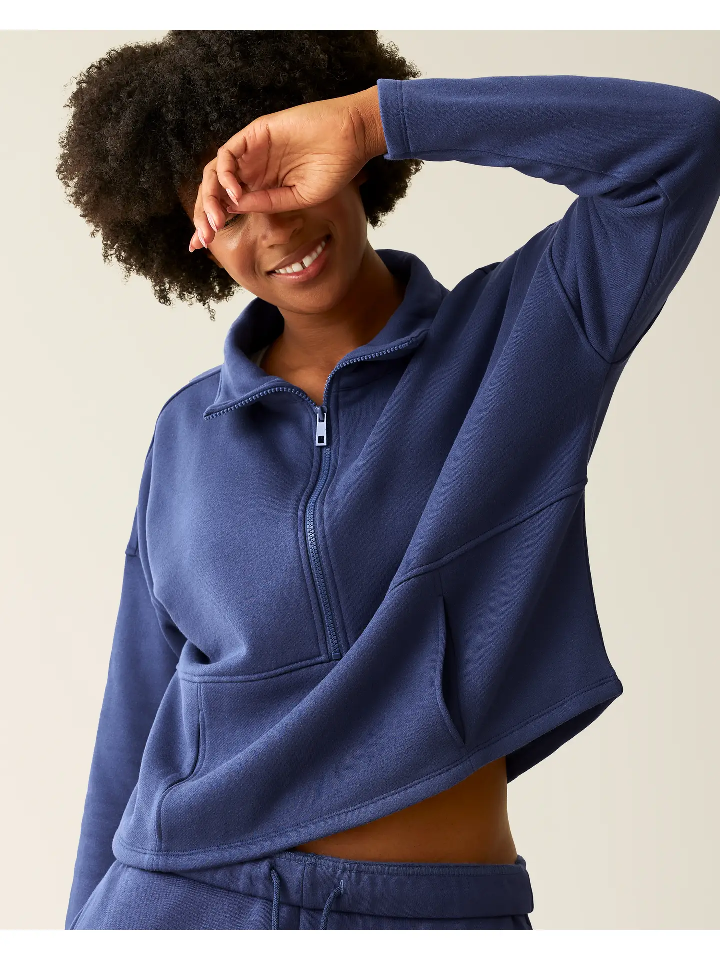 Designed for breastfeeding but made to outlast it, this is the kind of piece you’ll keep reaching for. Crafted in our signature Cloud Fleece – super-smooth on the outside, fleecy-soft on the inside – this half-zip combines laid-back ease with thoughtful function. The zipper goes below the bust for easy, discreet nursing access, while the dolman sleeves, waist-length cut, and kangaroo pocket bring a relaxed, modern feel.