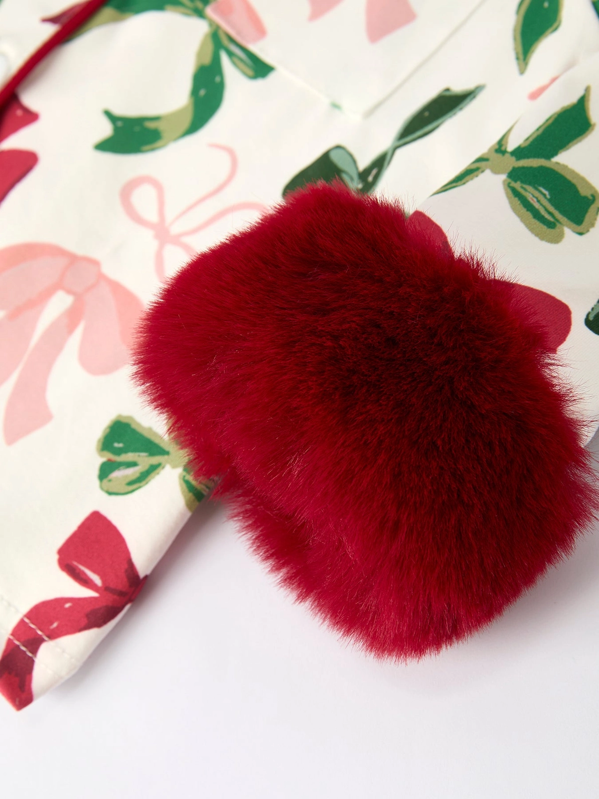 Bring some festive cheer to bedtime with this Christmas lights print pajama set for girls. Made with cozy fabric and charming red piping, these pajamas provide a warm and cozy feel for festive nights. The playful holiday bow pattern adds a touch of joy, making them the perfect sleepwear for both holiday celebrations and cozy winter nights.