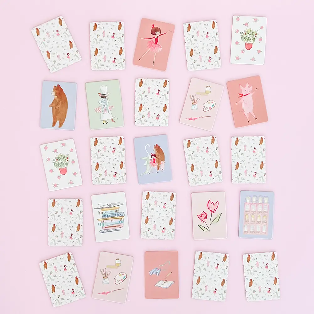 A classic memory-matching card game—with a twist! These cards are perfect for little hands. Have fun while encouraging memory, matching, and turn-taking skills. Whoever collects the most pairs wins!