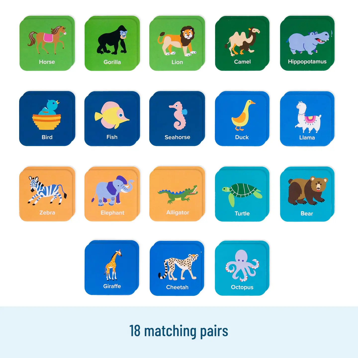 Wildkin's matching game helps create endless hours of fun, creativity and imagination. Wildkin's playful illustrations are on one side, while the opposite side is blank so children can design their own personal matching game! Kid friendly playing pieces with rounded edges and durable materials combine learning and play by improving memory and focus.