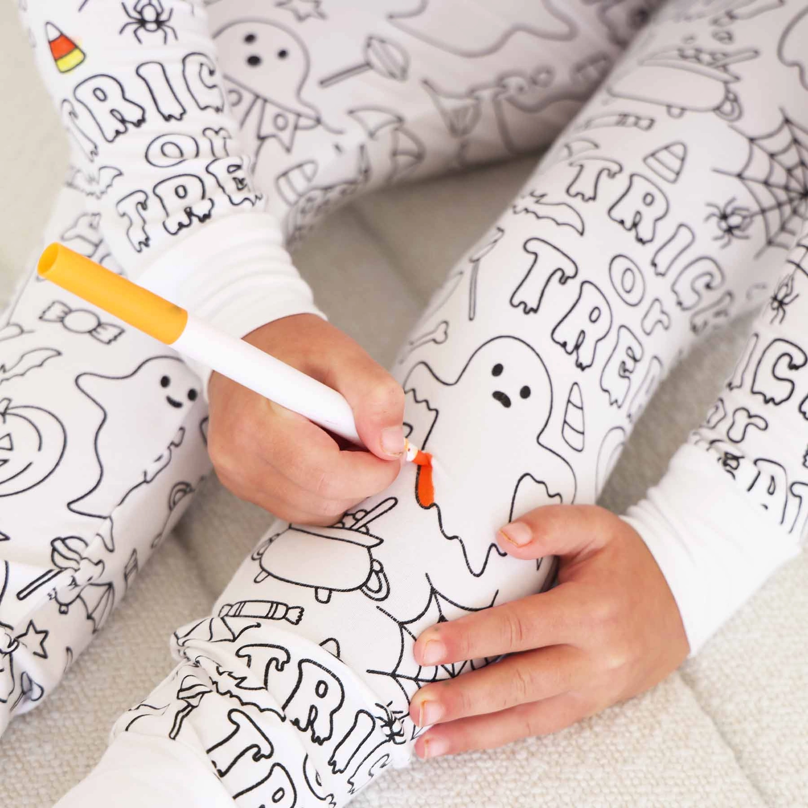 Get ready for a frightfully fun night with our No Tricks All Treats colorable pajamas!
